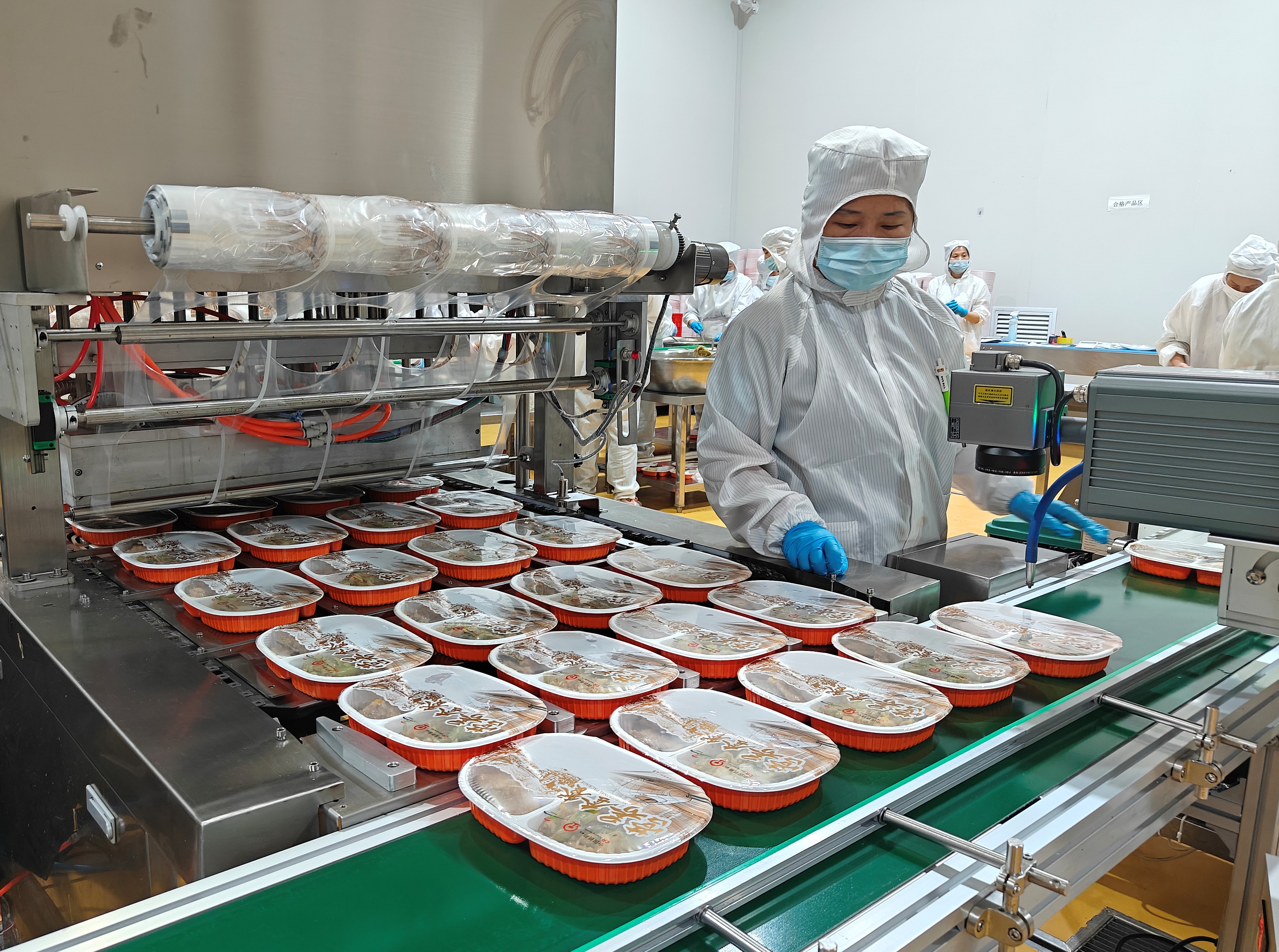 目前,金德利冷鏈配餐生產(chǎn)線已實(shí)現(xiàn)全程自動化無縫銜接。從烹飪、檢測、分裝,到覆膜、賦碼、貼標(biāo),再到冷凍保鮮和智能裝箱,整套流程貫穿智能化與標(biāo)準(zhǔn)化理念。每日超過4000份高品質(zhì)冷鏈餐食通過高速列車送達(dá)旅客手中,以實(shí)際行動踐行“國企餐飲 安全優(yōu)質(zhì)”的品牌承諾。